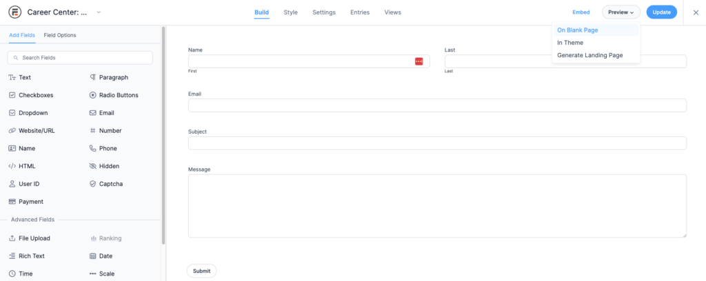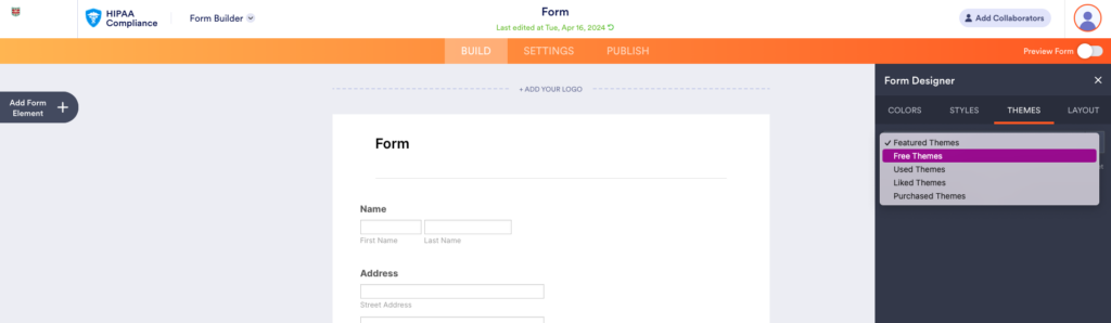 In the form builder screen, select the paint roller icon from the right side to enter the “Form Designer”.